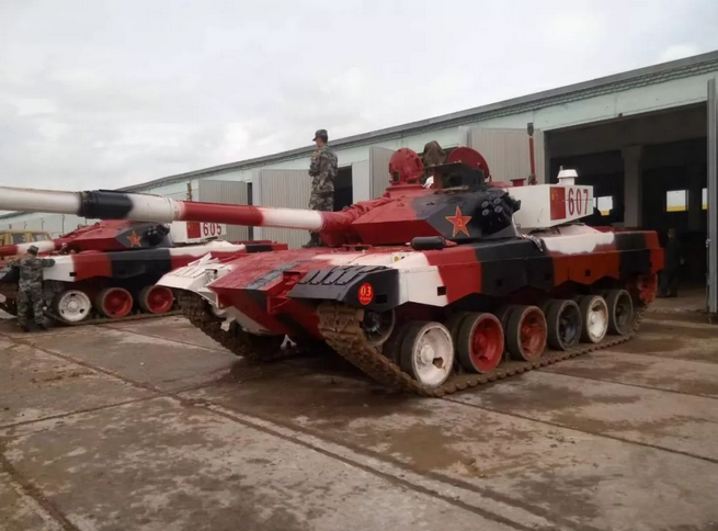 中国96B坦克热身打响第一炮 身着“红袍”28日出战