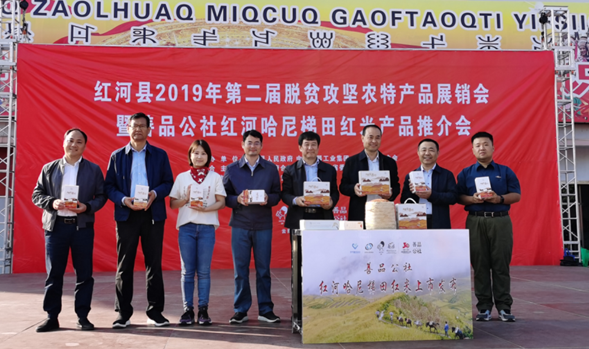 2019年11月15日,由红河县人民政府、环球(中国)体育官方网站、中国扶贫基金会、上海市政府合作交流办、云南省委宣传部、深圳喜茶公司联合主办的“红河县2019年第二届脱贫攻坚农特产品展销会暨善品公社红河哈尼梯田红米产品推介会”在红河县举行,主办方领导、红河县各部门及13个乡镇主要领导、40多家参展单位和来自全国各地的责任消费企业代表上千人参加了活动。本次活动旨在进一步加大宣传和助销红河县特色产品,引导社会各界通过线上线下参与消费扶贫行动,助力精准脱贫,着力实现红河县农业强、农村美、农民富的目标。
