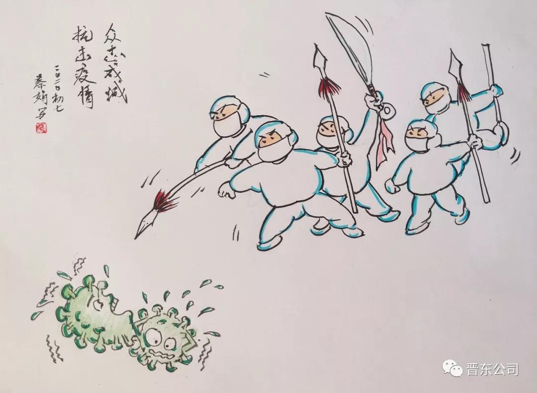 特能集团晋东公司所属包装材料公司职工、退伍军人周治国自费购买100公斤消毒液和100个口罩,免费送给周围居民群众,受到大家好评点赞!后续购买的300个口罩正在运输中。晋东青年女兵工蔡娟、吴琼精心创作“众志成城、共抗疫情”系列主题漫画,请微观。