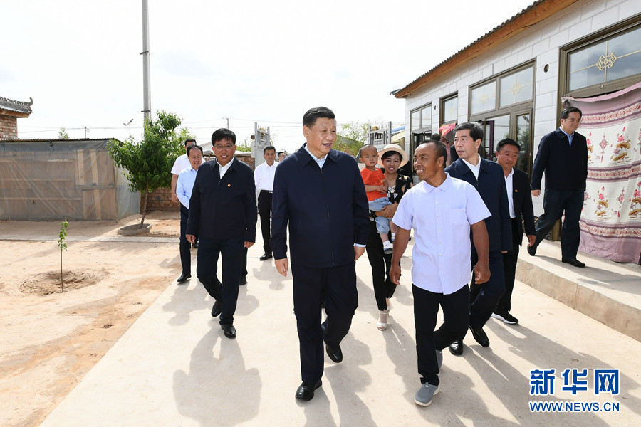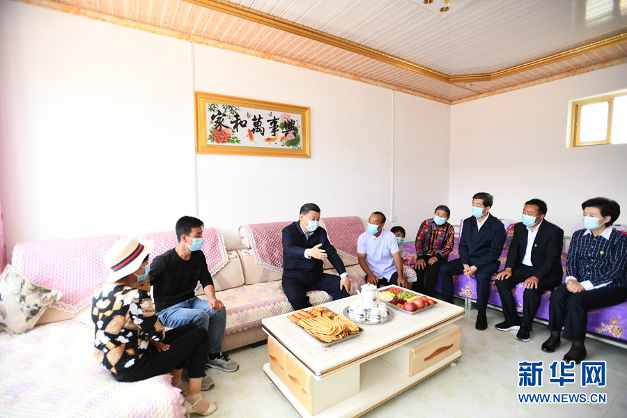 6月8日至10日,中共中央总书记、国家主席、中央军委主席习近平在宁夏考察。这是6月8日下午,习近平在吴忠市红寺堡区红寺堡镇弘德村看望移民搬迁群众,向村民们挥手致意。 新华社记者 谢环驰 摄 新华社银川6月10日电 中共中央总书记、国家主席、中央军委主席习近平近日在宁夏考察时强调,要全面落实党中央决策部署,坚持稳中求进工作总基调,坚持新发展理念,落实全国“两会”工作部署,坚决打好三大攻坚战,扎实做好“六稳”工作,全面落实“六保”任务,努力克服新冠肺炎疫情带来的不利影响,优先稳就业保民生,决胜全面建成小康社会,决战脱贫攻坚,继续建设经济繁荣、民族团结、环境优美、人民富裕的美丽新宁夏。 夏日炎炎,塞上江南天高云淡,草木葱茏。6月8日至10日,习近平在宁夏回族自治区党委书记陈润儿、自治区政府主席咸辉陪同下,先后来到吴忠、银川等地,深入农村、社区、防洪工程、农业产业园区等,就统筹推进常态化疫情防控和经济社会发展工作、巩固脱贫攻坚成果、加强生态环境保护、推动民族团结进步进行调研。 6月8日至10日,中共中央总书记、国家主席、中央军委主席习近平在宁夏考察。这是6月8日下午,习近平在吴忠市红寺堡区红寺堡镇弘德村扶贫车间,同正在加工制作纸箱的村民交流。 新华社记者 鞠鹏 摄 吴忠市红寺堡区红寺堡镇弘德村是生态移民村,有建档立卡贫困户1036户4497人,目前还有20户50人未脱贫。8日下午,习近平首先来到弘德村考察脱贫攻坚工作。在村扶贫车间院内,他听取了宁夏以及弘德村脱贫攻坚情况介绍。走进扶贫车间,习近平同正在加工制作纸箱的村民们亲切交流。乡亲们告诉总书记,村里引入企业从事纸箱包装业务,解决了一百多人就业问题。习近平表示肯定。他指出,兴办扶贫车间目的是扶贫,要坚持扶贫性质,向困难群众倾斜,多招收困难群众就业。乡亲们在家门口就业,虽然收入不比进城务工高,但省去了住宿、伙食、交通等费用,还能照顾家庭,一举多得。企业参与兴办扶贫车间,体现了先富带后富,很有意义。 6月8日至10日,中共中央总书记、国家主席、中央军委主席习近平在宁夏考察。这是6月8日下午,习近平在吴忠市红寺堡区红寺堡镇弘德村察看回族村民刘克瑞家院落。 新华社记者 谢环驰 摄 随后,习近平步行察看村容村貌。在回族村民刘克瑞家,他仔细看院落、客厅、卧室、厨房、牛棚,详细了解家庭就业、收入、看病、社保等情况。刘克瑞告诉总书记,家里的耕地流转了,还养了3头肉牛,儿子儿媳在附近纺织厂打工,2017年全家脱贫,生活越来越好,乡亲们打心底里感到党的政策好,真切感受到共产党亲。习近平询问刘克瑞老两口还有什么困难、对今后的日子有什么打算。习近平强调,乡亲们搬迁后,更好生活还在后头。希望乡亲们百尺竿头、更进一步,发挥自身积极性、主动性、创造性,用自己的双手创造更加美好的新生活。 6月8日至10日,中共中央总书记、国家主席、中央军委主席习近平在宁夏考察。这是6月8日下午,习近平在吴忠市红寺堡区红寺堡镇弘德村,同回族村民刘克瑞一家亲切交流。 新华社记者 谢环驰 摄 离开村子时,村民们纷纷赶到村口,欢送总书记。习近平向大家挥手致意,祝愿乡亲们生活幸福。 6月8日至10日,中共中央总书记、国家主席、中央军委主席习近平在宁夏考察。这是6月8日下午,习近平在黄河吴忠滨河大道古城湾砌护段,察看黄河生态治理保护状况。 新华社记者 鞠鹏 摄 习近平高度重视黄河流域生态保护和高质量发展。他来到黄河吴忠滨河大道古城湾砌护段,沿岸边步道,察看黄河生态治理保护状况,听取黄河宁夏段生态保护治理和水利工程建设情况汇报。习近平指出,黄河是中华民族的母亲河,是中华民族和中华文明赖以生存发展的宝贵资源。自古以来,黄河水滋养着宁夏这片美丽富饶的土地,今天仍在造福宁夏各族人民。宁夏要有大局观念和责任担当,更加珍惜黄河,精心呵护黄河,坚持综合治理、系统治理、源头治理,明确黄河保护红线底线,统筹推进堤防建设、河道整治、滩区治理、生态修复等重大工程,守好改善生态环境生命线。 6月8日至10日,中共中央总书记、国家主席、中央军委主席习近平在宁夏考察。这是6月8日下午,习近平在吴忠市利通区金花园社区党群活动服务中心,同社区志愿者代表亲切交谈。 新华社记者 鞠鹏 摄 6月8日至10日,中共中央总书记、国家主席、中央军委主席习近平在宁夏考察。这是6月8日下午,习近平在吴忠市利通区金花园社区考察民族团结社区创建工作情况。 新华社记者 谢环驰 摄 6月8日至10日,中共中央总书记、国家主席、中央军委主席习近平在宁夏考察。这是6月8日下午,习近平在吴忠市利通区金花园社区广场,同居民们亲切交流。 新华社记者 燕雁 摄 傍晚时分,习近平前往吴忠市利通区金花园社区。社区常住居民13850人,汉、回、满、蒙、藏等各族群众和睦相处,曾荣获“全国民族团结进步模范集体”称号。习近平来到社区党群活动服务中心,了解社区党建工作、民族团结社区创建和为民服务工作情况,同社区志愿者代表亲切交谈。社区广场十分热闹,正在休闲娱乐的居民看见总书记来了,围拢过来,热烈鼓掌。习近平深情对大家说,中华民族是多元一体的伟大民族。全面建成小康社会,一个少数民族也不能少。各民族团结携