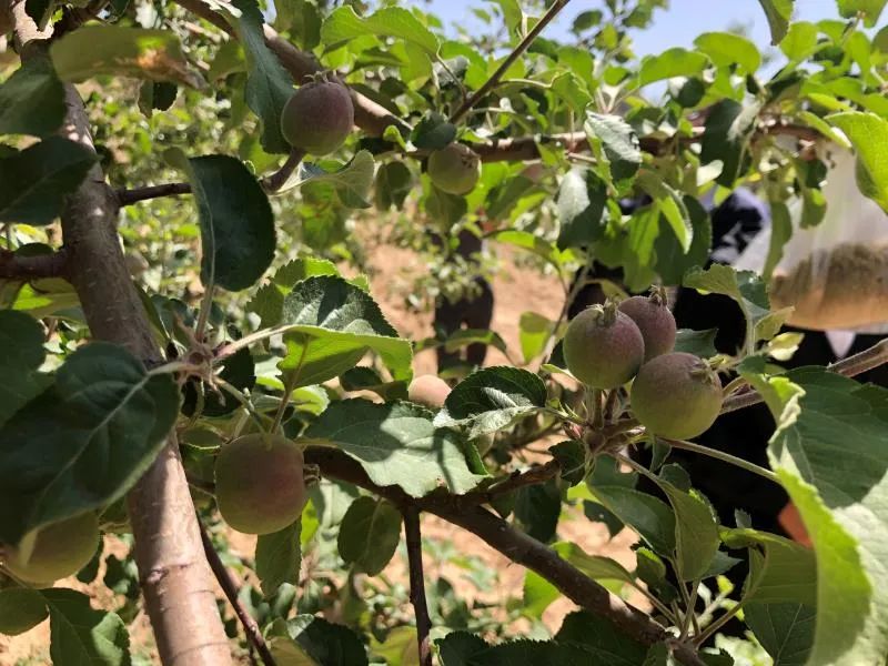 这是李建义在中国兵器工业集团西安近代化学研究所和延安市安塞区、镇、村多方帮扶下,种植的15亩苹果园果树首次挂果。