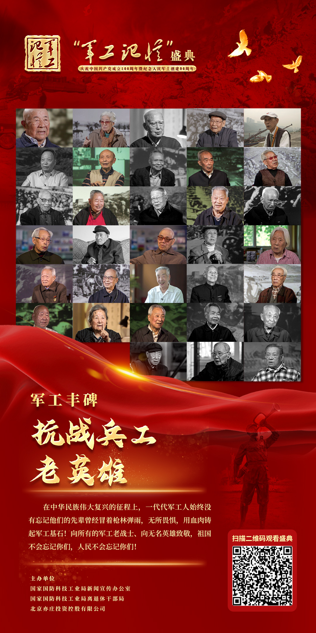 为庆祝中国共产党成立100周年和纪念人民军工事业创建90周年,国防科工局新闻宣传办公室、国防科工局离退休干部局、北京亦庄投资控股有限公司联合主办,各军工集团公司和中物院协办的“军工记忆”特别节目,于7月31日正式在央视频上线。