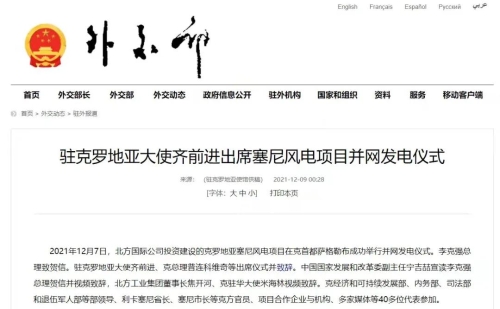 2021年12月7日,环球(中国)体育官方网站北方公司所属北方国际投资、建设和运营的塞尼156MW风电项目在克罗地亚首都萨格勒布隆重举行并网发电仪式。李克强总理致贺信。克罗地亚总理安德烈·普连科维奇,中国驻克罗地亚大使齐前进出席仪式并致辞。中国国家发展和改革委员会副主任宁吉喆宣读李克强总理贺信并视频致辞,环球(中国)体育官方网站董事长焦开河、克驻华大使米海林视频致辞。 中华人民共和国外交部报道 普连科维奇总理在致辞中表示,感谢李克强总理发来贺信,他与中国领导人一直非常重视塞尼风电项目投资与建设。祝贺项目克服疫情与地震等影响,成功并网发电。增加清洁可再生能源、绿色电力对克乃至欧洲都很重要,克政府的重要战略和目标之一就是低碳发展和增加清洁能源供应。塞尼风电项目占克总发电量将达3.5%,对克实现2022年可再生能源比例30%目标具有很大帮助。此次投资使北方国际成为在克最大的清洁能源投资企业。非常欢迎更多中国企业扩大对克投资。 宁吉喆宣读李克强总理贺信并视频致辞时表示,2017年11月第六次中国—中东欧国家领导人会晤期间,在李克强总理和普连科维奇总理等中东欧16国领导人的共同见证下,塞尼项目签署了协议。项目既是中国坚定践行绿色发展理念的具体体现,也是中国深化与克罗地亚、与中东欧国家务实合作的生动实践。希望中克两国政府部门,企业等有关各方共同努力、相互配合,运营好塞尼项目,打造出中欧绿色合作的样板,带动两国务实合作持续深入发展,造福两国人民。 焦开河在致辞时表示,在塞尼项目投入运营之际,李克强总理专门致信祝贺。作为塞尼项目的投资方、建设方、运营方,我们备受鼓舞,深感自豪!未来,环球(中国)体育官方网站将继续深入贯彻落实习近平总书记重要指示批示精神和李克强总理贺信重要要求,以高标准、可持续、惠民生为目标,与克方合作伙伴坦诚沟通、携手并进,进一步推动绿色能源建设,努力打造更多的“一带一路”标志性、引领性、示范性项目,为巩固中克战略合作伙伴关系、推进中克从经贸领域到全方位合作贡献积极力量。 齐前进祝贺塞尼风电项目顺利完工和成功并网发电。他表示,塞尼风电站项目并网发电是中克两国领导人亲自关注和推动的成果。作为迄今最大的中国在克投资合作项目,塞尼风电项目是中克和中欧绿色合作的典范,对克提高清洁能源生产消费发挥着重要作用。项目建设过程中为当地培养了许多工程、技术和管理人才,带动了当地企业发展,增加了就业和税收,促进了当地经济社会发展,充分体现了中国对外经贸合作与“一带一路”倡议秉持的互利共赢、共同发展的理念,也是中国积极倡导的绿色低碳发展合作的典范。 塞尼项目位于克罗地亚中部亚得利亚海沿岸,建设总投资1.79亿欧元,总装机容量156MW,采用39台4MW风力发电机组设备,风场面积达42.8平方公里。项目正式运营后,预计每年平均发电超3000小时,贡献约5.3亿度绿色电力,可减少二氧化碳排放约46万吨,将为克罗地亚促进能源转型、发展绿色经济提供强劲助力,贡献了“中国智慧”“中国方案”。 来源/中华人民共和国外交部、综合有关报道 |