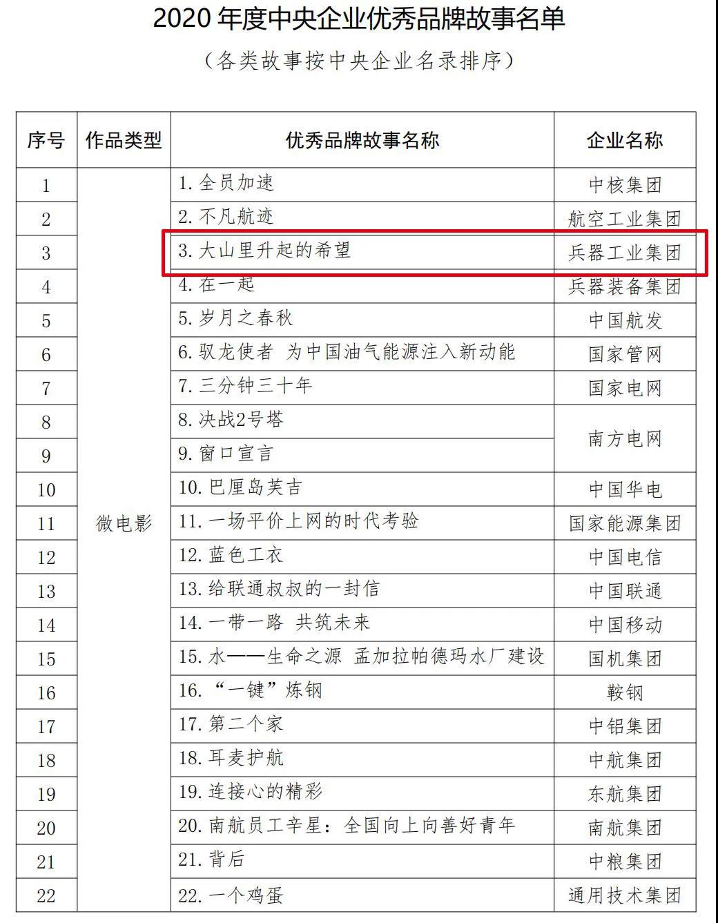 兵器工业集团品牌建设案例入选2020年度100个国有企业品牌建设典型案例和100个优秀品牌故事 |