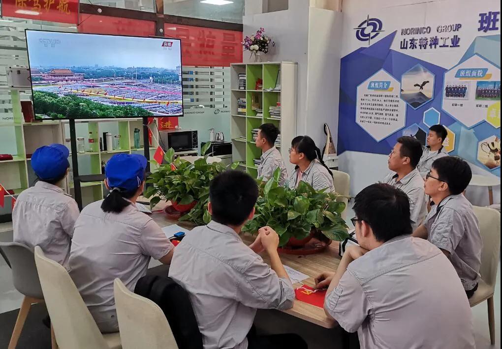 集团公司总经理、党组副书记刘大山,党组副书记周舰,党组成员、总会计师张华,纪检监察组组长、党组成员陈学钏,党组成员、副总经理邹文超,党组成员、副总经理植玉林带领总部全体职工观看庆祝大会,各单位组织机关干部、科研人员、车间工人等通过集中收看、电视、电脑、手机网络等方式观看庆祝大会。