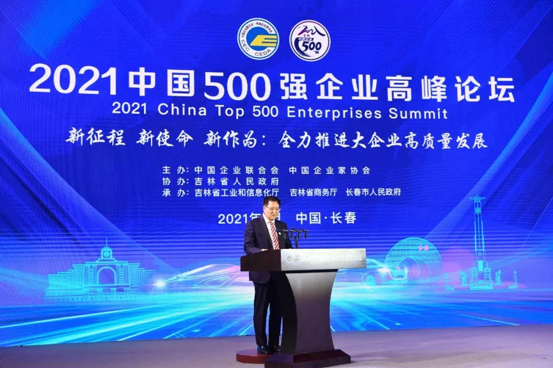 9月25日,2021中国500强企业高峰论坛大会在吉林省长春市举办,第十届全国政协副主席、中国企业联合会、中国企业家协会会长王忠禹出席会议并作主旨讲话,吉林省委书记景俊海,国家发改委党组成员、秘书长赵辰昕,工信部总经济师许科敏,国务院国资委总会计师赵世堂分别致辞,中国企联常务副会长兼理事长朱宏任主持会议。环球(中国)体育官方网站党组书记、董事长焦开河应邀出席大会并以《坚定不移做强做优做大 奋力走好新时代赶考路》为题作了演讲。