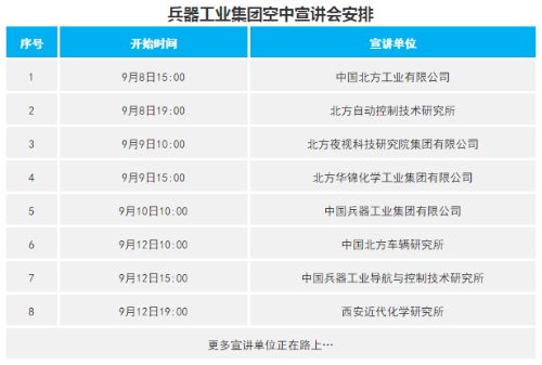 兵器工业集团诚邀你的加入 真诚为你导航,寻找未来曙光 让我们携起手来 铸造国之重器,贡献青春力量 一、公司简介 中国兵器工业集团是我军机械化、信息化、智能化装备发展的骨干全军毁伤打击的核心支撑、现代化新型陆军体系作战能力科研制造的主体、国家“一带一路”建设和军民融合发展的主力。拥有50余家子集团和直管单位,分布在29个省市自治区,资产总额4545亿元,人员总量23万余人,世界500强企业排名127位,连续17年获国务院国资委业绩考核A级。 二、招聘对象 面向2022届应届毕业生 三、招聘需求 兵器工业集团2022届校园招聘,职位需求1854个,计划招聘人数6560人,同比2021届增长46%,涉及专业200余个。 武器类 武器系统与工程,弹药工程与爆炸技术,火炮、自动武器与弹药工程,探测制导与控制技术,军事化学与烟火技术等。 机械类 机械设计制造及其自动化,机械工程及自动化,机械电子工程,车辆工程,动力工程及工程热物理,材料成型及控制工程,工业工程等。 电子类 电子科学与技术,信息与通信工程,电子信息工程,通信工程,微电子学,集成电路设计与集成系统,凝聚态物理等。 计算机类 计算机科学与技术,网络工程,软件工程,大数据与人工智能等。 材料类 金属材料工程,材料科学与工程,冶金工程,高分子材料与工程等。 自动化类 电气工程及其自动化,自动化,控制科学与工程,控制理论与控制工程,模式识别与智能系统,导航、制导与控制等。 仪器类 测控技术与仪器,仪器科学与技术,仪器仪表工程等。 光学工程类 光学工程,光电信息工程,信息显示与光电技术,光信息科学与技术等。 航空航天类 飞行器设计与工程,航空宇航推进理论与工程,飞行器动力工程等。 经管类 经济学,工程管理,市场营销,会计学,财务管理,人力资源管理,审计学,物流管理等。 其他类 法学,语言类,数学类,力学类,化学类,建筑类,土木类,测绘类,地质类,矿业类,海洋工程类,环境与安全类,临床医学类等。 四、招聘安排 线上招聘 兵器工业集团线上招聘会安排 期间我们将组织兵器工业集团下属单位开展空中专场双选会,参加各大高校的空中招聘会,敬请期待! 还有多场干货满满的空中宣讲会,等待你的到来。 兵器工业集团空中宣讲会安排 请登录: 中国兵器校园招聘平台 “空中招聘”专栏,参加空中双选会,扫码预约观看宣讲会。 线下招聘 受疫情影响,各高校线下招聘会行程时间待定,具体安排请关注“中国兵器校园招聘平台”或微信公众号“中国兵器招聘”,详细信息后续将第一时间在此发布。