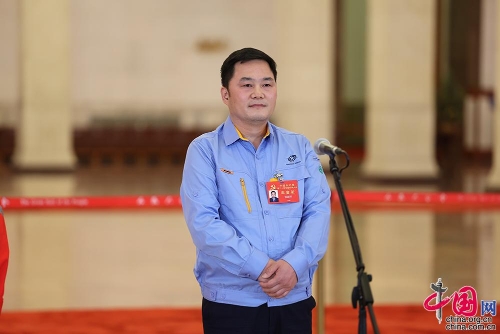 10月22日,二十大“党代表通道”第二场采访活动在人民大会堂举办。图为中国兵器西北工业集团研究院试制分厂钳工高级技师张新停。中国网记者 董宁 摄