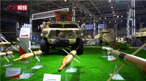 【解说】在第十四届中国航展上,有一个展馆主要展出的是坦克、装甲车等地面装备,叫作兵器馆,这里同样备受军迷追捧。本届航展,新型军贸合成旅首次亮相,按照1+10+1的整体架构,进行布局展示。