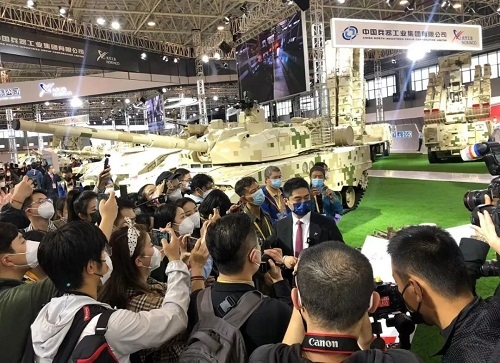 本届航展,兵器工业集团着重展示面向实战需求的军贸陆军合成旅整体作战方案,在新闻发言人的介绍下,媒体记者与坦克装甲车辆、各型火炮、步兵战车、侦察装备、无人装备、反坦克装备、防空装备、作战支援装备、城镇作战装备等主要展品亲密接触,进一步了解装备的性能和特点。