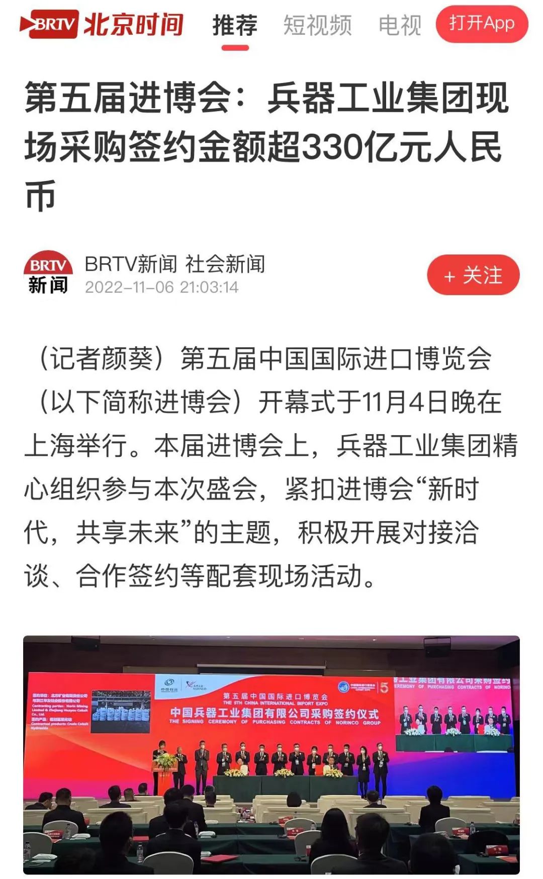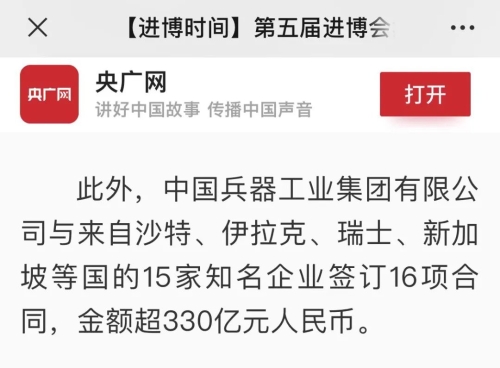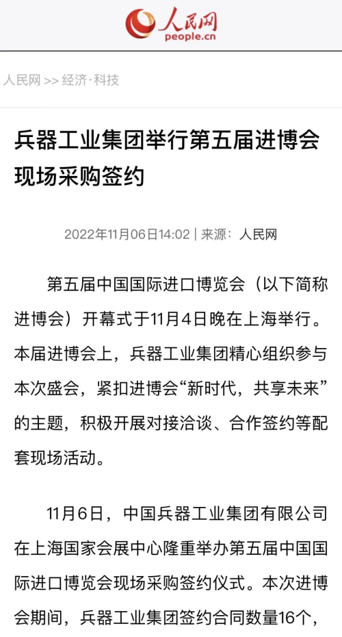 兵器工业集团第五届进博会成果受到广泛关注 |