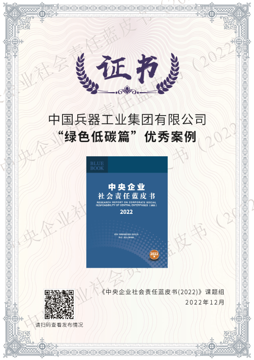 兵器工业集团绿色低碳案例入选《中央企业社会责任蓝皮书(2022)》 |