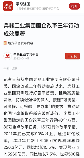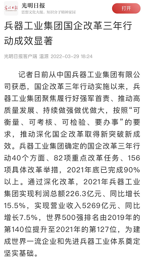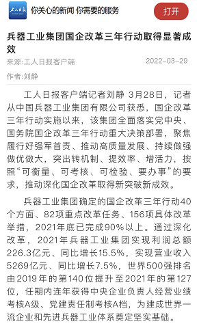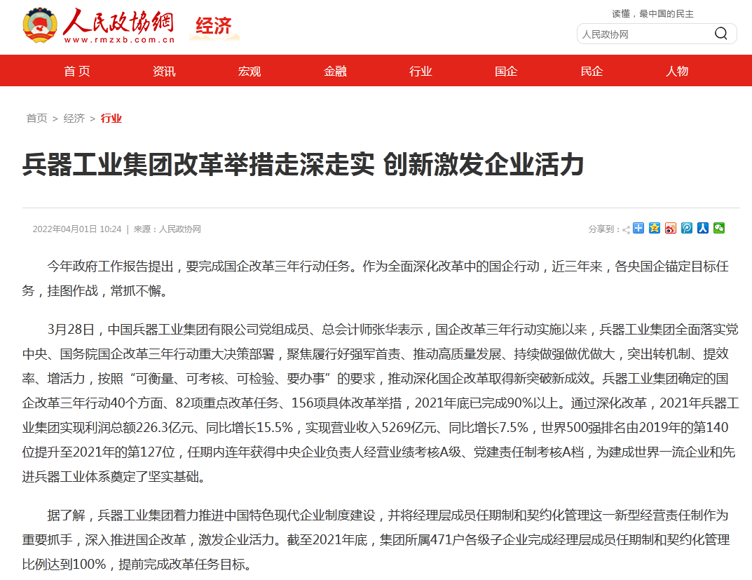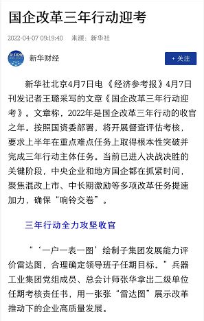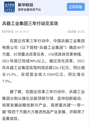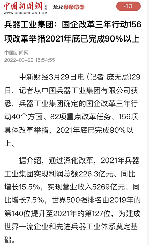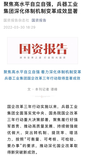 兵器工业集团国企改革三年行动工作成效引发广泛关注丨国企改革看兵器 |