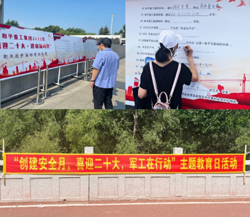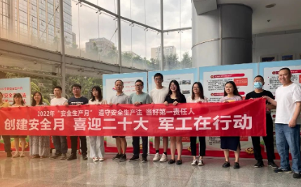 和平重工集团在安全生产月期间组织开展了“创建安全月 喜迎二十大 军工在行动”主题教育日活动,现场悬挂宣传横幅标语,工作人员为职工们发放安全知识宣传册、扇子等宣传用品,并在现场组织了安全知识有奖答题环节,调动广大职工参与的积极性,大力营造了“关爱生命、关注安全”的良好氛围。