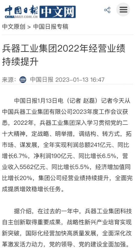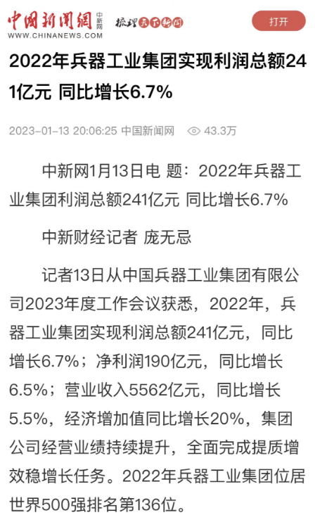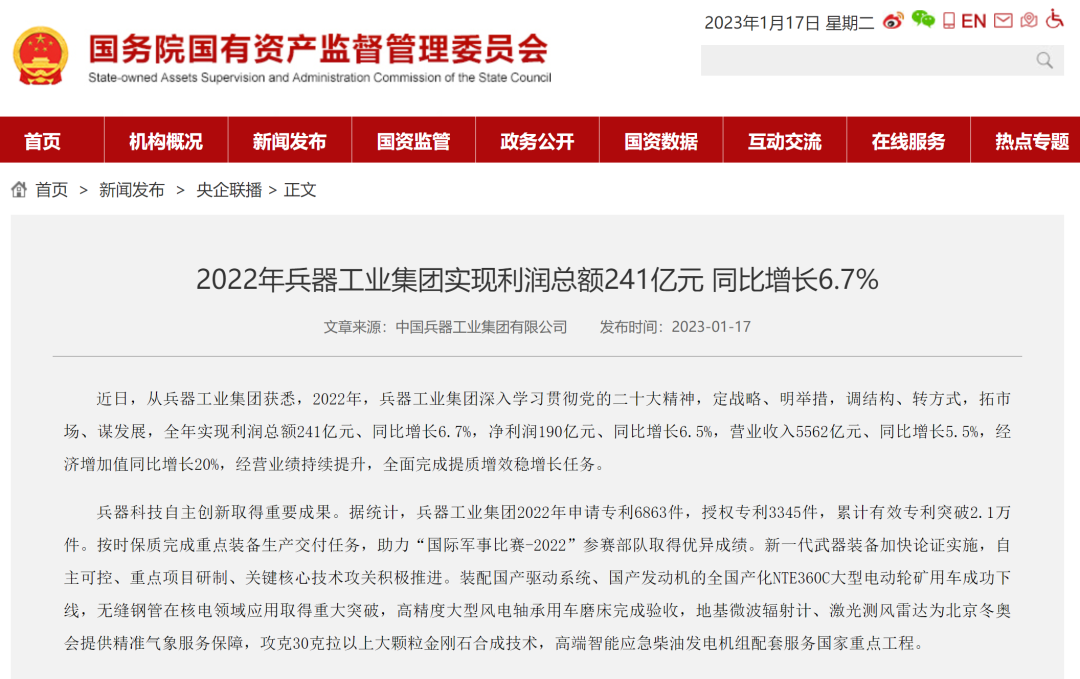1月13日,环球(中国)体育官方网站召开2023年度工作会议,传达学习中央领导同志、军方首长和上级部门重要批示,总结集团公司2022年工作,研究部署2023年主要工作任务。 集团公司2022年重点工作取得的成绩及下一步的改革发展受到社会媒体广泛关注。新华社、新华财经、人民网、经济日报客户端、光明日报客户端、中国日报网、中国科技网、中国新闻网、央广网、国资委网站、学习强国中央企业学习平台、新浪网、腾讯网、搜狐网、网易网、今日头条等中央主流媒体、国家部委网站及知名网络媒体对集团公司工作会议进行了报道,重点关注集团公司高质量发展、科技创新、战略性新兴产业培育、深化改革、国际化经营、履行央企社会责任等内容。其中新华社以《北斗时空智能服务平台累计服务终端数突破15亿》为题,重点报道了集团公司2022年在自主创新、战略新兴产业培育、专利申请等方面取得的成绩;经济日报客户端、光明日报客户端、中国日报网等以《兵器工业集团2022年经营业绩持续提升》为题,重点报道了集团公司在高质量发展、全面完成提质增效稳增长方面取得的成绩。集团公司门户网站、微信公众号、微博等新媒体也对集团公司工作会议进行了及时报道,各成员单位纷纷对相关内容进行转载,引发全系统关注。 新华社:北斗时空智能服务平台累计服务终端数突破15亿 新华财经:兵器工业集团2022年实现净利润190亿元 同比增长6.5% 人民网:2022年中央企业营收同比增长8.3% 科技创新成效显著 经济日报客户端:兵器工业集团2022年经营业绩持续提升 光明日报客户端:兵器工业集团2022年经营业绩持续提升 中国日报网:兵器工业集团2022年经营业绩持续提升 中国科技网:兵器工业集团2022年实现利润总额241亿元 中国新闻网:2022年兵器工业集团实现利润总额241亿元 同比增长6.7% 国资委网站:2022年兵器工业集团实现利润总额241亿元 同比增长6.7% 学习强国中央企业学习平台:兵器工业集团2022年经营业绩持续提升 集团公司职工及广大网友热议工作会议 “这次会议全面总结了2022年工作,深入分析研判当前形势,部署2023年重点工作,为我们做好2023年及今后一个时期的工作明确了目标、坚定了信心。” “作为兵工人,我要苦练内功、不惧挑战、奋勇向前,为建设具有全球竞争力的世界一流集团公司贡献自己的力量。” “聚焦高科技领域,制造更多的大国重器,让更多的产品服务老百姓。” “在不平凡的2022年取得了亮眼的工作成绩,为兵器工业点赞。” “希望能有更多新型武器装备部队,2023年,望你们再创辉煌,加油!” |