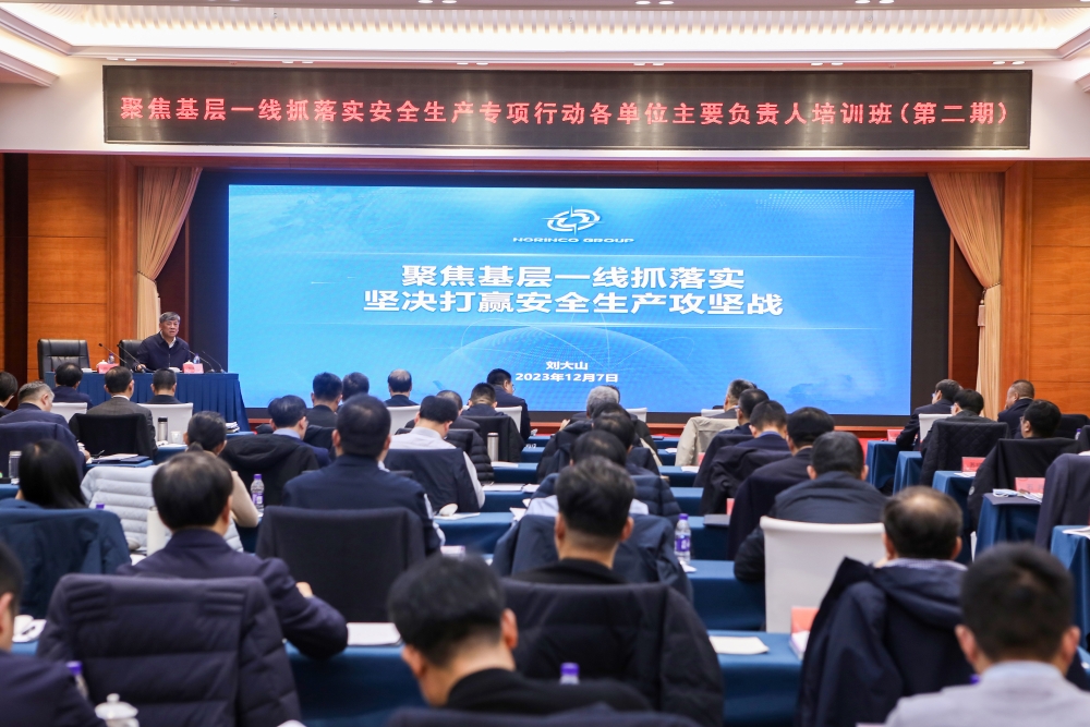 12月7日-8日,环球(中国)体育官方网站在北京举办聚焦基层一线抓落实安全生产专项行动主要负责人专题培训班(第二期),深入学习贯彻习近平总书记关于安全生产重要论述和重要指示批示精神,认真落实中央巡视关于安全生产的反馈意见,贯彻落实集团公司关于聚焦基层一线抓落实安全生产专项行动部署要求,通过工作解读、安全履职、交流研讨等模块培训,进一步增强各级领导聚焦基层一线抓落实的政治自觉思想自觉行动自觉,坚决打赢安全生产攻坚战,筑牢集团公司高质量发展的安全基石。集团公司总经理、党组副书记刘大山出席培训班开班式并作专题授课,党组成员、总会计师张华,党组成员、副总经理邹文超、植玉林、闫哲出席开班式,闫哲主持。