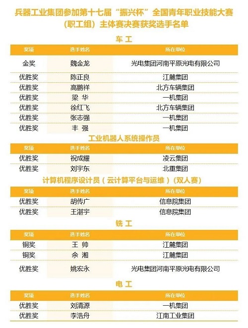 喜报丨兵器工业集团青年职工在第十七届“振兴杯”全国青年职业技能大赛(职工组)决赛中勇夺金奖 |