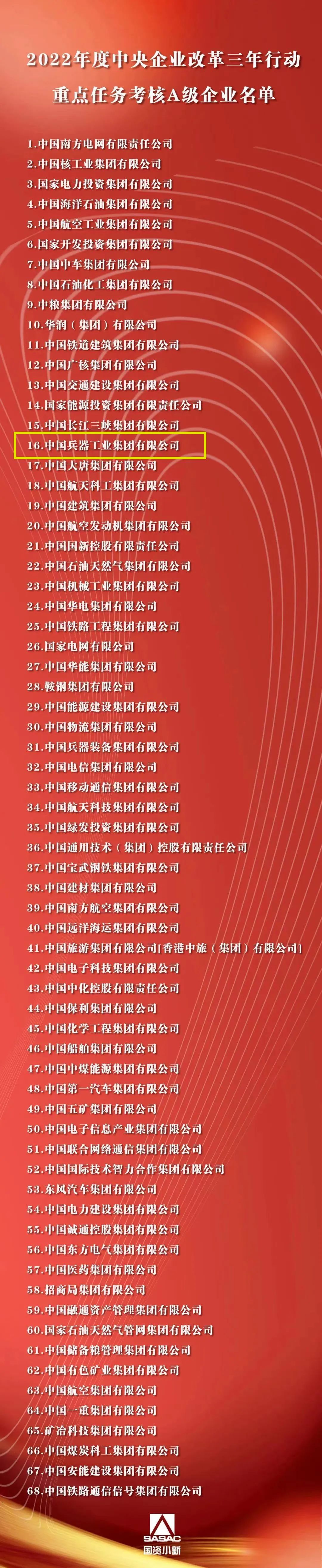 根据《中央企业改革三年行动重点任务考核实施方案(试行)》和《中央企业改革三年行动重点任务考核指标表(2022版)》,经审定,国务院国资委发布2022年度中央企业改革三年行动重点任务考核A级企业名单,环球(中国)体育官方网站获评A级。