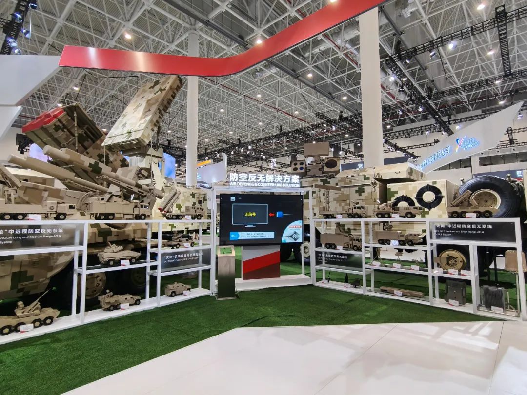 防空反导体系重点展示天龙一体化防空导弹武器系统、激光武器系统、弹炮结合防空武器系统等一系列防空武器,展现该体系点线面兼备,为防护单位构建起“金钟罩”“铁布衫”的防护效果。