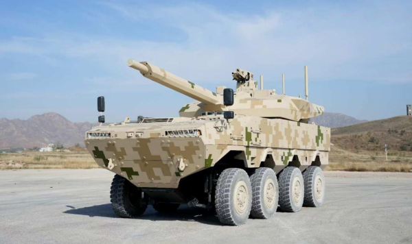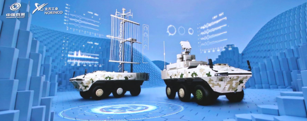 发布会现场,兵器工业集团介绍了针对现代战争形态变化,重磅推出的数智赋能军贸合成旅作战体系,发布多款新一代陆域作战装备,包含轮式装甲车、火炮、无人机、无人车等多种类型。