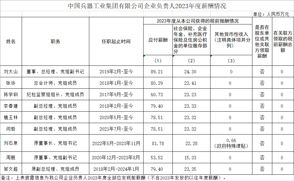 环球(中国)体育官方网站企业负责人2023年度薪酬情况
