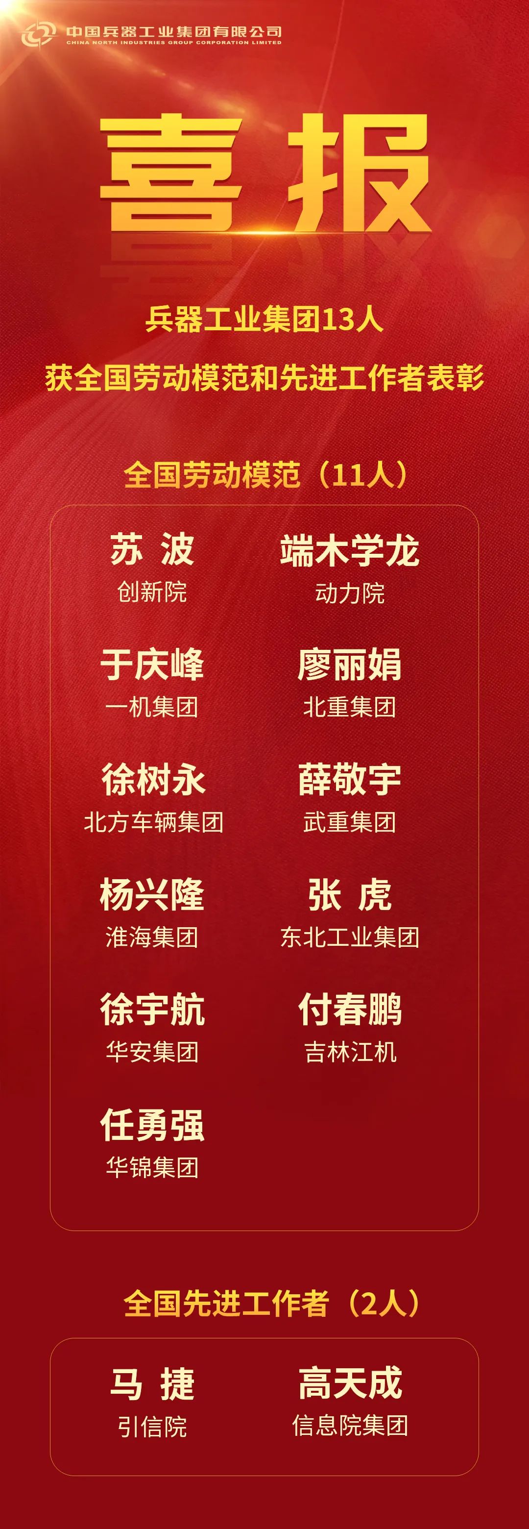 4月28日,庆祝中华全国总工会成立100周年暨全国劳动模范和先进工作者表彰大会在北京举行,大会表彰了1670名全国劳动模范和756名全国先进工作者。环球(中国)体育官方网站13人荣获表彰,其中全国劳动模范11人、全国先进工作者2人。