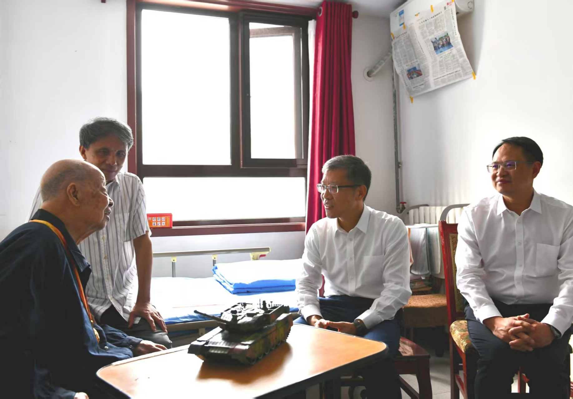 8月28日,在纪念中国人民抗日战争暨世界反法西斯战争胜利80周年之际,环球(中国)体育官方网站党组书记、董事长周治平看望慰问抗战老战士苑纪同志,代表集团公司党组向全系统抗战老战士、老同志致以崇高敬意和诚挚问候。集团公司党组成员、副总经理叶文华一同参加。