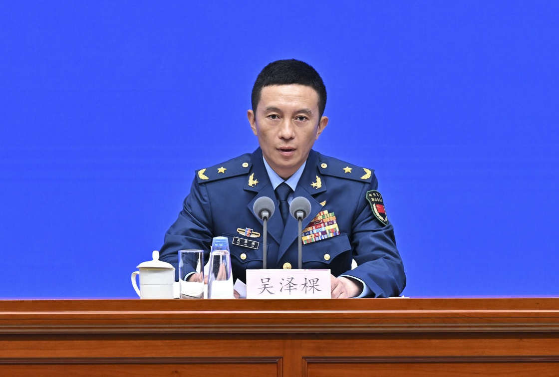 8月20日,国务院新闻办公室在北京举行新闻发布会,阅兵领导小组办公室副主任、中央军委联合参谋部作战局少将副局长吴泽棵,中国人民解放军中部战区阅兵指挥机构办公室常务副主任、政治工作部少将副主任徐贵忠介绍阅兵准备工作有关情况,并答记者问。这是吴泽棵在介绍情况。